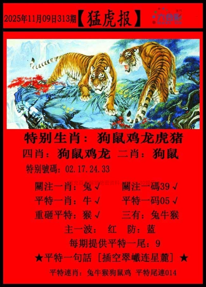 | 315期:美丑两肖〖凶丑+鸡羊〗开:虎04准 |